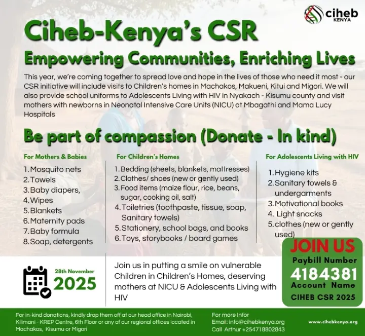This festive season, Nyando Social Justice Center is proud to partner with CIHEB Kenya in a heartfelt CSR initiative titled "Empowering Communities, Enriching Lives." Together, we're spreading love and hope to those who need it most across our region.